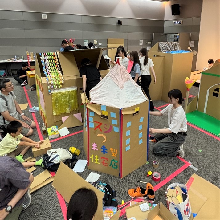 住まい情報センターで毎年夏に開催している小学生向けワークショップ通称「まちつく」。2025年は「まちつく万博〜未来につながるまちをつくろう〜」と題し、2日間にわたって開催された。