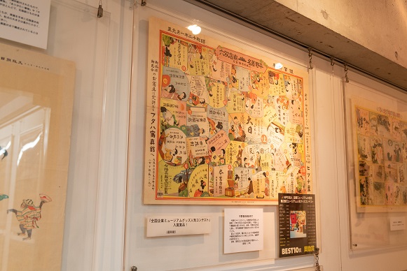 当たり前の日常の中にこそ、歴史を読み解くヒントがある。暮らしに関わる〝モノ〞を通して、今につながる文化を再認識してもらうことも今昔館の使命である。今昔館の企画展「おまけ大行進」は、江崎グリコのおもちゃをはじめ、大阪に関連あるメーカーやコレクターによる玩具やフィギュアを一堂に集めた展覧会であった。「江崎記念館」では、江崎グリコの創業者・江崎利一氏の哲学を紹介しながら、商品の歴史を総覧できる。利一氏は「子どもの天職は、食べることと遊ぶことである」と考え、食べ物とおもちゃをセットにした健康菓子グリコを開発した。そこには知育の精神があり、その先見性には驚かされる。「彼は佐賀県人だが、大阪の風土の中でその才能が開花した人です。大阪でなければ生まれなかった文化がたくさんあるが、グリコもその一つです」(谷)。
