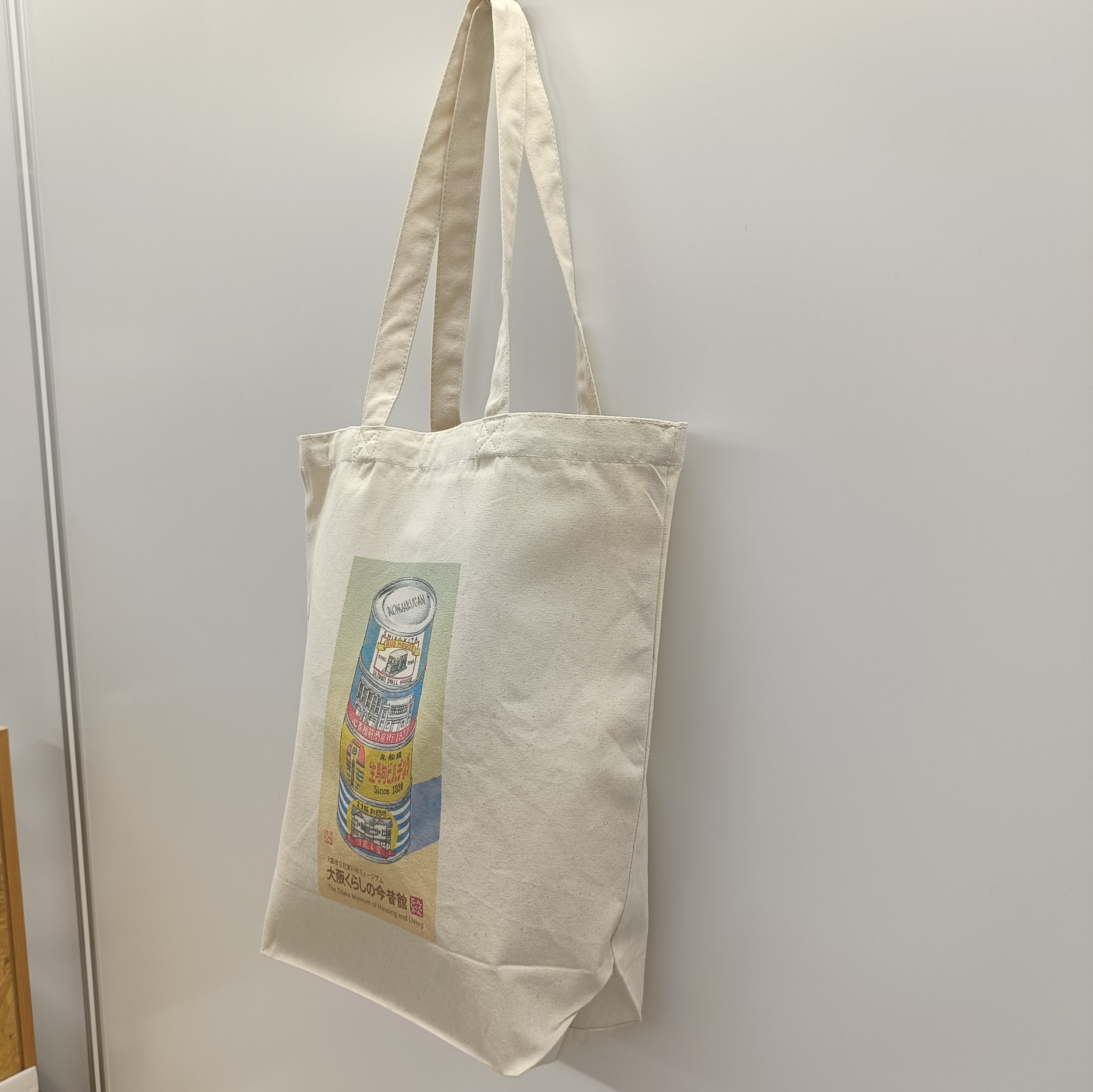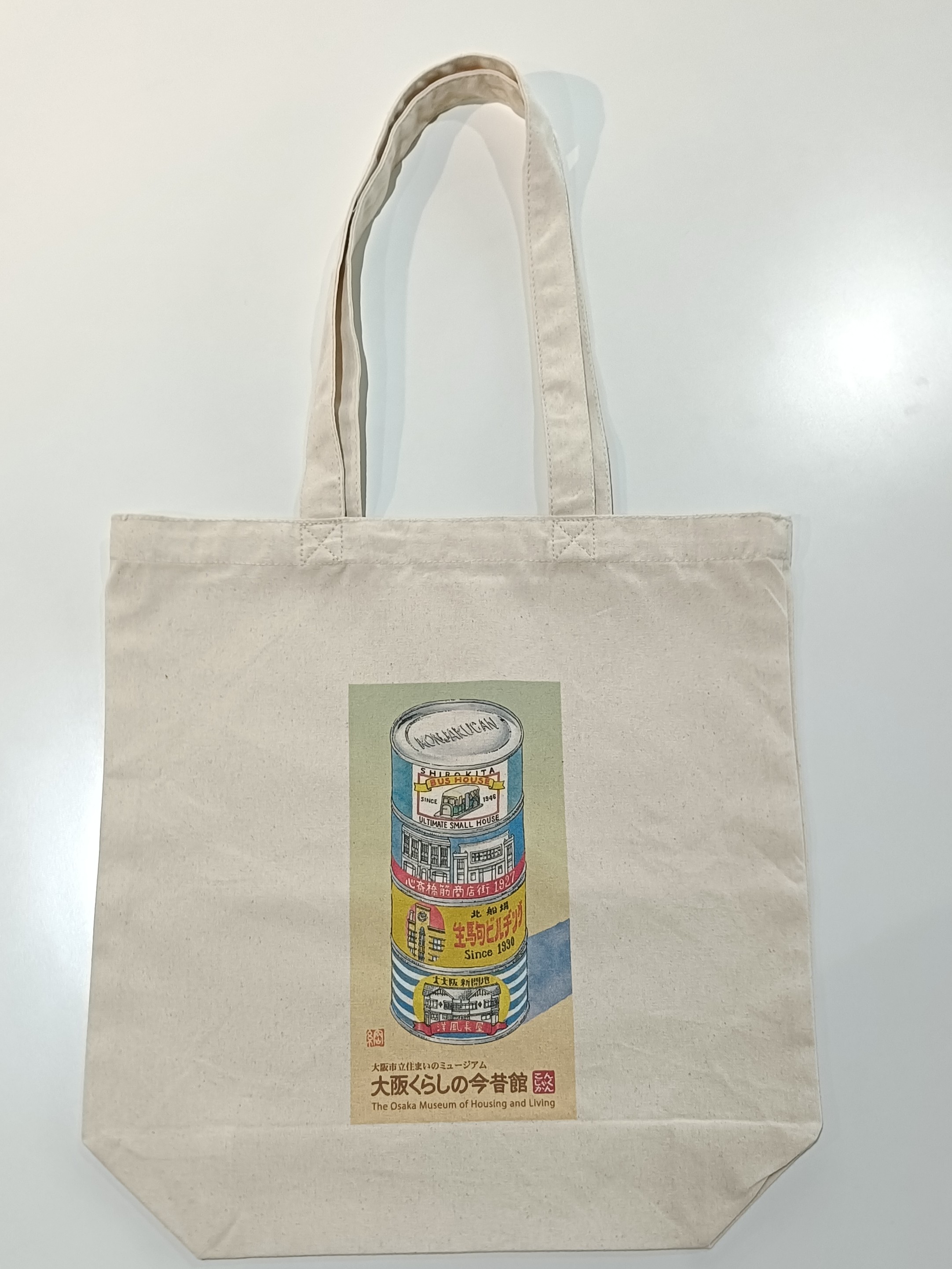 常設展関連 【G-7】オリジナルトートバッグ/1,100 円(税込) この刊行物について問い合わせる 価格 1,100 円(税込)《立体サイズ:約W25cm×H37cm×D11㎝》 大阪くらしの今昔館が作成した「オリジナルトートバッグ」(マチつき) 素材:コットン100% 生地の厚さ:8オンス ※洗濯の際、多少縮むことがあります。
