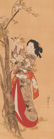 桜下美人図/佐藤魚大筆 当館蔵